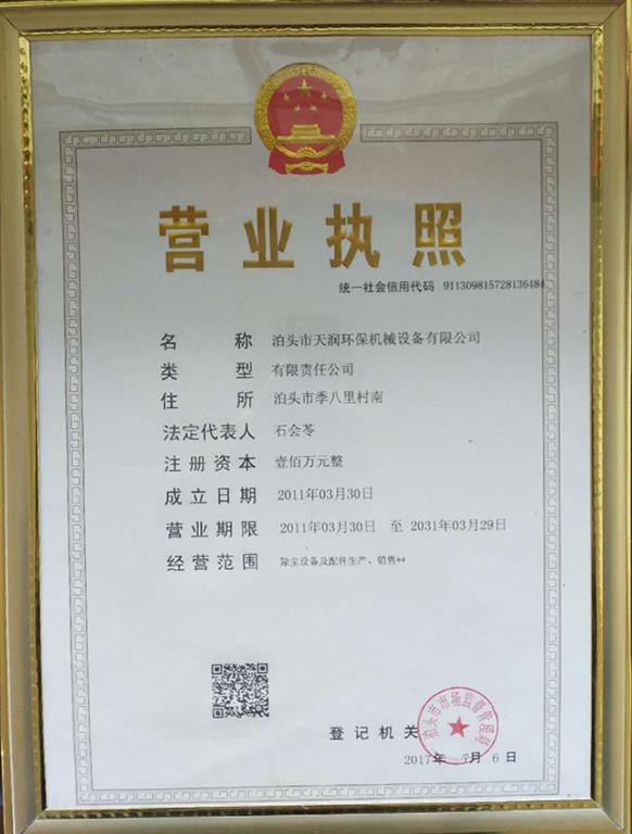 天润除尘公司营业执照-泊头市天润环保机械设备有限公司