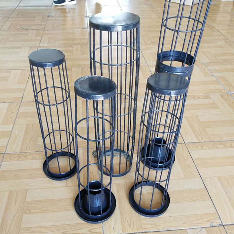除尘骨架合理的外形框架结构:首先外形尺寸应满足与除尘布袋相配套,满足除尘器过滤压力强度与清灰强度的要求。具体的方面包括除尘骨架丝的直径,圈距以及加强丝的根数。