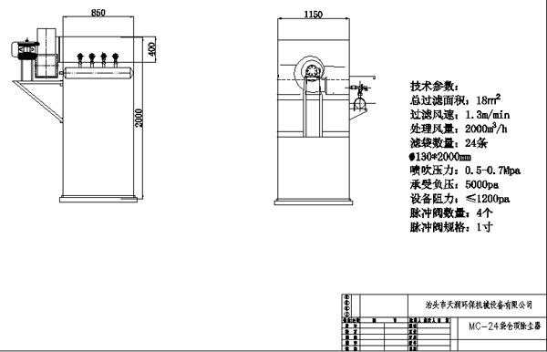 仓顶布袋除尘器仓顶脉冲袋式除尘器,按仓顶工作要求简化了结构,具有气体处理能量大,净化效果好,性能稳定,运行可靠的特点。与机械振动式仓顶除尘器相比,还具有滤袋使用寿命长,无机械运动磨损件等特点。适宜布置在各种粉料储存库的顶部,用于捕集各种细小干燥的非纤维粉尘。是筒库除尘的常用设备。
