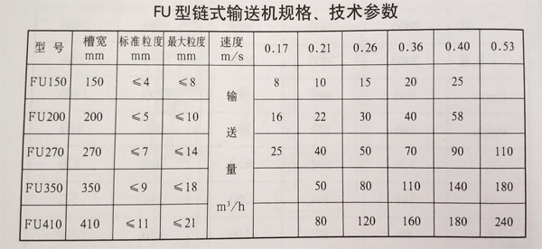 FU型链式输送机规格: