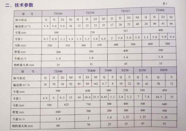 TD、D型提升机适用于垂直输送粉状、粒状及小块状的物料,如粮食、煤、水泥、碎矿石等,输送高度大于40m, 其特点为:结构简单,运行平稳,挖取式装料,离心式卸料,物料温度不大于60℃.TD型按JB3926-85《